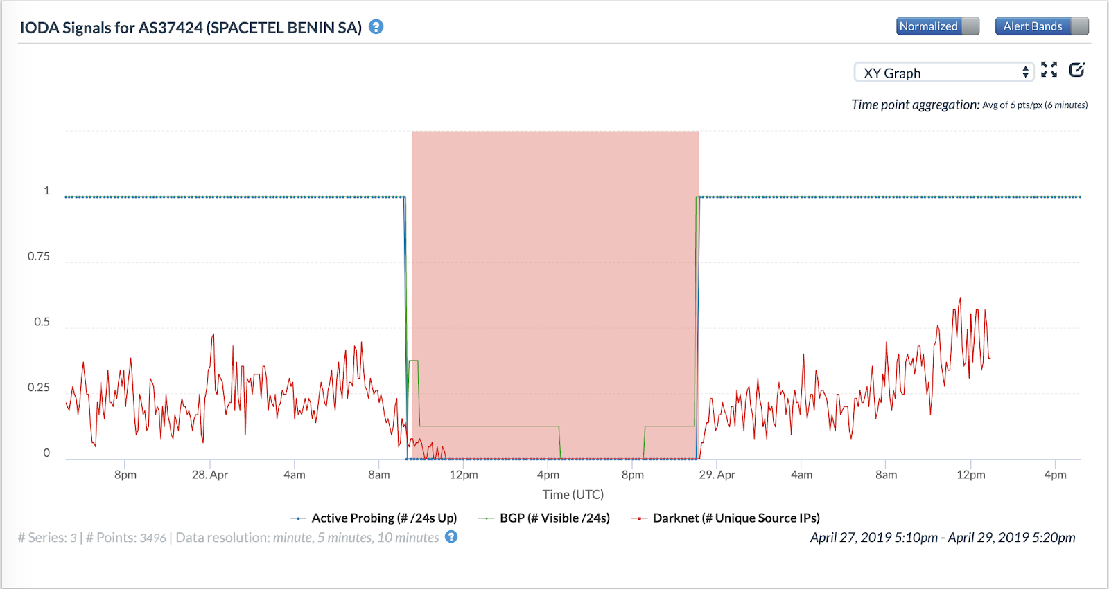 Figure 15: Internet Outage Detection and Analysis (IODA), AS28683