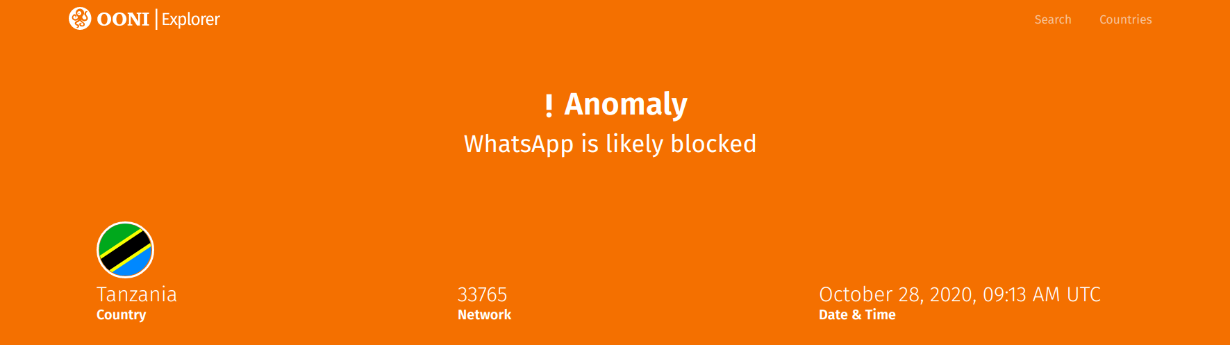Starting from yesterday (27th October 2020), we observe the blocking of WhatsApp on multiple networks in Tanzania.